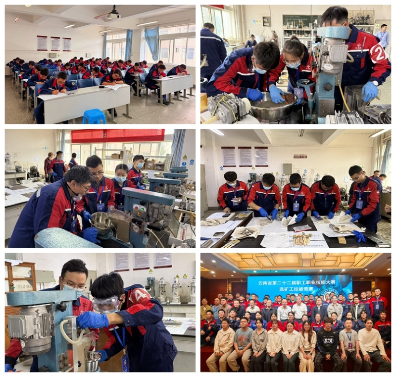 按照競賽實(shí)施方案,經(jīng)過層層選拔,共有來自云南錫業(yè)股份有限公司、云南黃金礦業(yè)集團(tuán)股份有限公司等7家單位的42名選手參賽。此次競賽的個(gè)人競賽部分設(shè)置了理論知識(shí)競賽和實(shí)操個(gè)人賽兩大板塊,內(nèi)容豐富且專業(yè),涵蓋磨浮車間開機(jī)程序、浮選工藝參數(shù)計(jì)算、浮選現(xiàn)象判斷、礦物比重測定、礦漿濃細(xì)度判斷以及安全防護(hù)與現(xiàn)場應(yīng)急等多個(gè)方面。團(tuán)體競賽分為現(xiàn)場礦樣試驗(yàn)和流程管路連接兩個(gè)項(xiàng)目。為確保競賽的公平公正,現(xiàn)場礦樣實(shí)驗(yàn)設(shè)備統(tǒng)一,參賽團(tuán)隊(duì)可自由選擇金屬礦礦樣或非金屬礦礦樣進(jìn)行操作,真正做到了“以賽促訓(xùn)、以賽提技”。